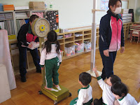 ほしぐみさんが身体測定をしていました。みんな幼稚園生活に慣れたようで、きちんと並んで自分の順番を待つことができました。